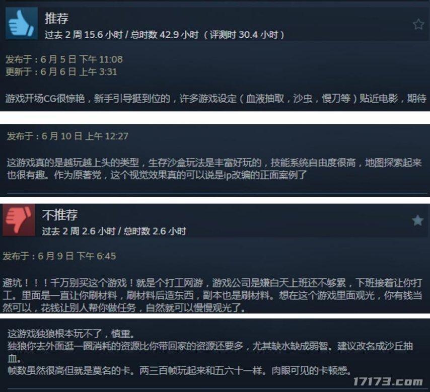 差評主要是內容太肝,對孤狼玩家不友好。有差評玩家吐槽,這就是一款打工遊戲,遊戲公司嫌白天上班還不夠累,下班接着讓你打工。還有差點被渴成乾屍的孤狼玩家吐槽,建議改名成《沙丘抽血》。