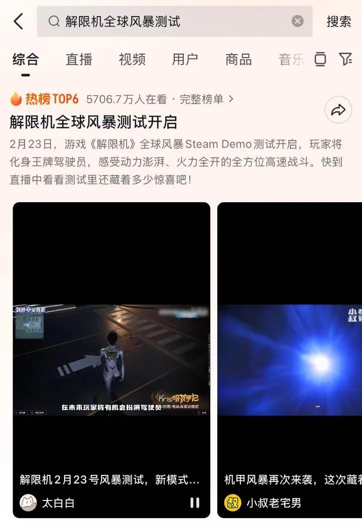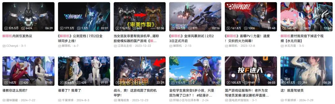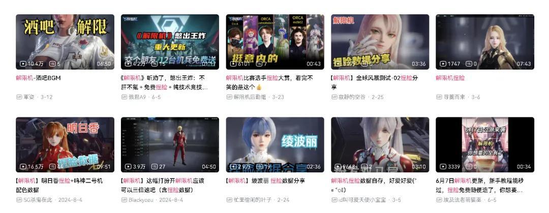 當時,《解限機》的相關內容發酵迅速,在國內僅用數天,「解限機」相關標籤便成爲各大互聯網平臺的熱門話題。在B站等長視頻平臺,百萬播放量級的視頻內容層出不窮,在抖音等短視頻平臺上,相關話題時不時也會衝上熱門榜前列。