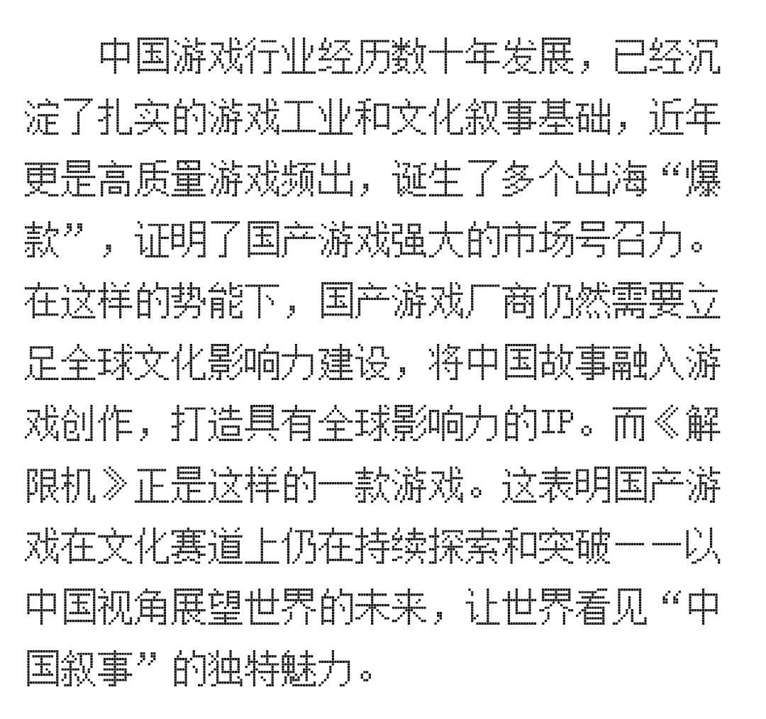 報道中,新華社還對《解限機》給出了很有分量的評價,指出它是一款「立足全球文化影響力建設,將中國故事融入遊戲創作,具有全球影響力的IP」。