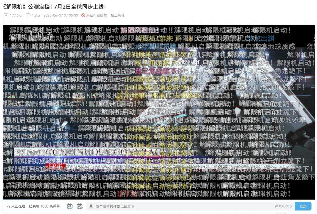 一段時間以來,這可能是熱度最高的一則公測定檔PV了。視頻一經發布就炸了鍋,彈幕全是狂刷「解限機啓動」的玩家。