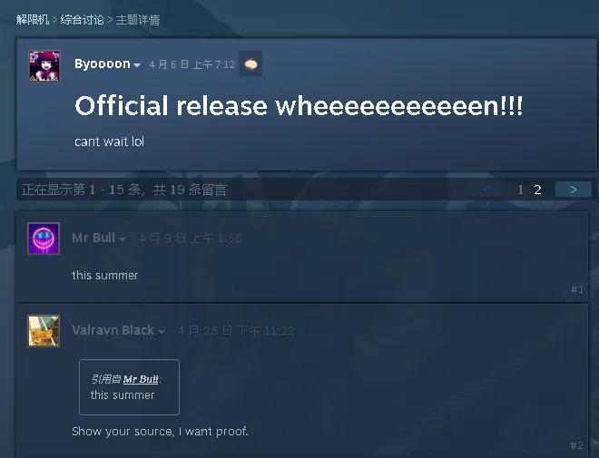 在全球風暴測試結束後,玩家對這款遊戲的態度,也很能說明一些問題。比如在B站遊戲官方動態的評論區,很多參與測試的玩家都在曬圖道別;在Steam的討論區,也有不少老外忍不住狂催遊戲上線,詢問公測時間。