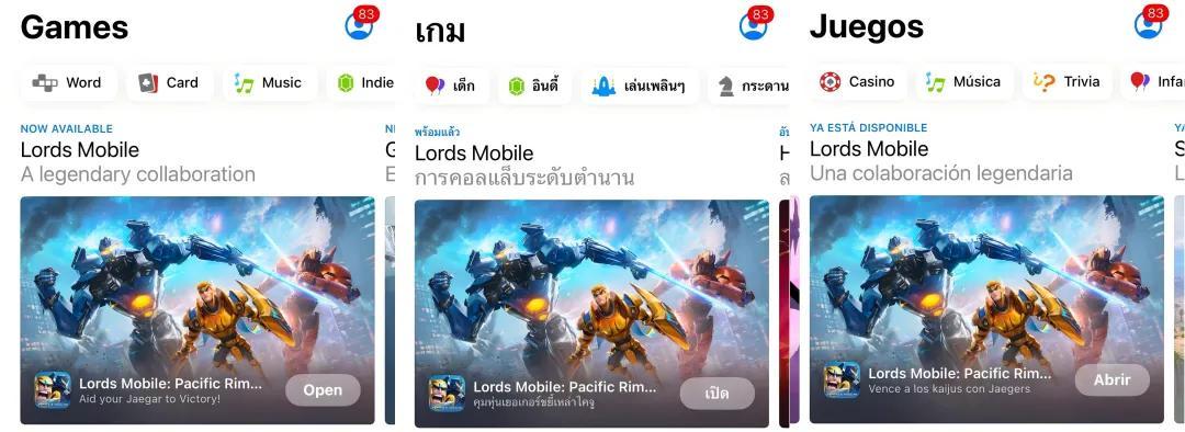 而就在前不久,葡萄君發現,這款被Sensor Tower評爲「長青遊戲」的產品,與知名科幻怪獸影視IP環太平洋開啓了聯動,並獲得了App Store、Google Play Store海外多地推薦頁的頂部位置。