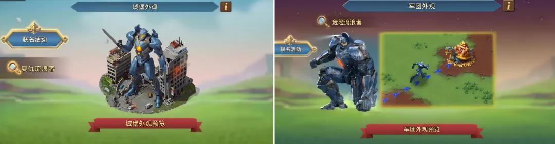 這次聯動活動,需要玩家深入環太平洋的世界,運用「機械蜘蛛」尋找遺失的碎片,完善拼圖。而尋回碎片的獎勵,則有強烈的環太平洋風格。比如結合復仇流浪者角色設定的同款裝備、相關城堡皮膚,以及結合危險流浪者設計的軍團外觀。