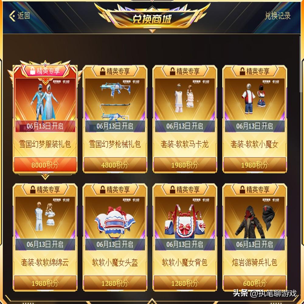 接下來我們一起來看下精英手冊出現的經典皮膚,首先是綽號“哼哈二將”之一的雪國夢幻系列禮包,其經典程度堪比初代木乃伊,可惜返場次數多到數不清,早就被老玩家用來壓箱底了;然後就是軟軟系列裏的小魔女、綿綿雲、馬卡龍以及頭盔、揹包等;最後則是3個大禮包,它們分別是熔岩遊騎兵、寒蠍幽靈以及赤蠍幽靈。
