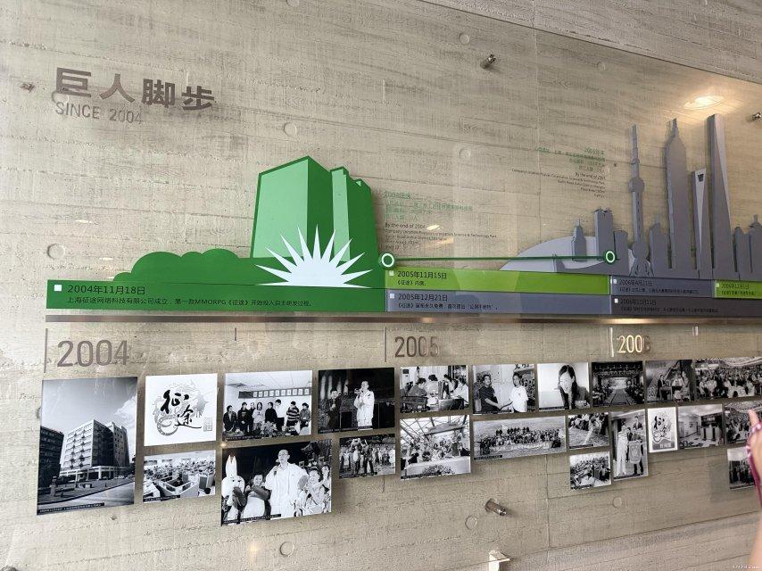 一樓大廳的 “巨人腳步” 文化走廊,記錄着征途系列產品的發展歷程,滿滿都是老玩家的回憶。