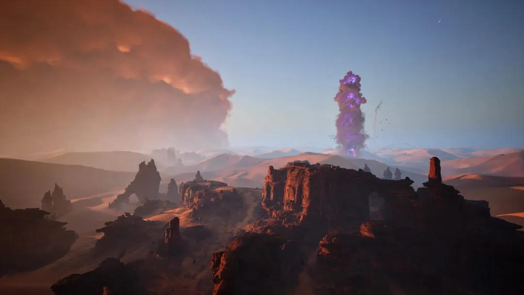 至於進入終局後的每週玩法循環,Joel參考了多人在線SOC《Rust》定期重置服務器的設計。剛好沙丘原著裏也描寫過科里奧利風暴“狂沙肆意侵蝕着懸崖,摧毀沙漠中種種事物,暴露出深埋沙下的祕密”的場面,有設定做支撐,團隊才衍生想出了沙漠腹地的「無限探索」。