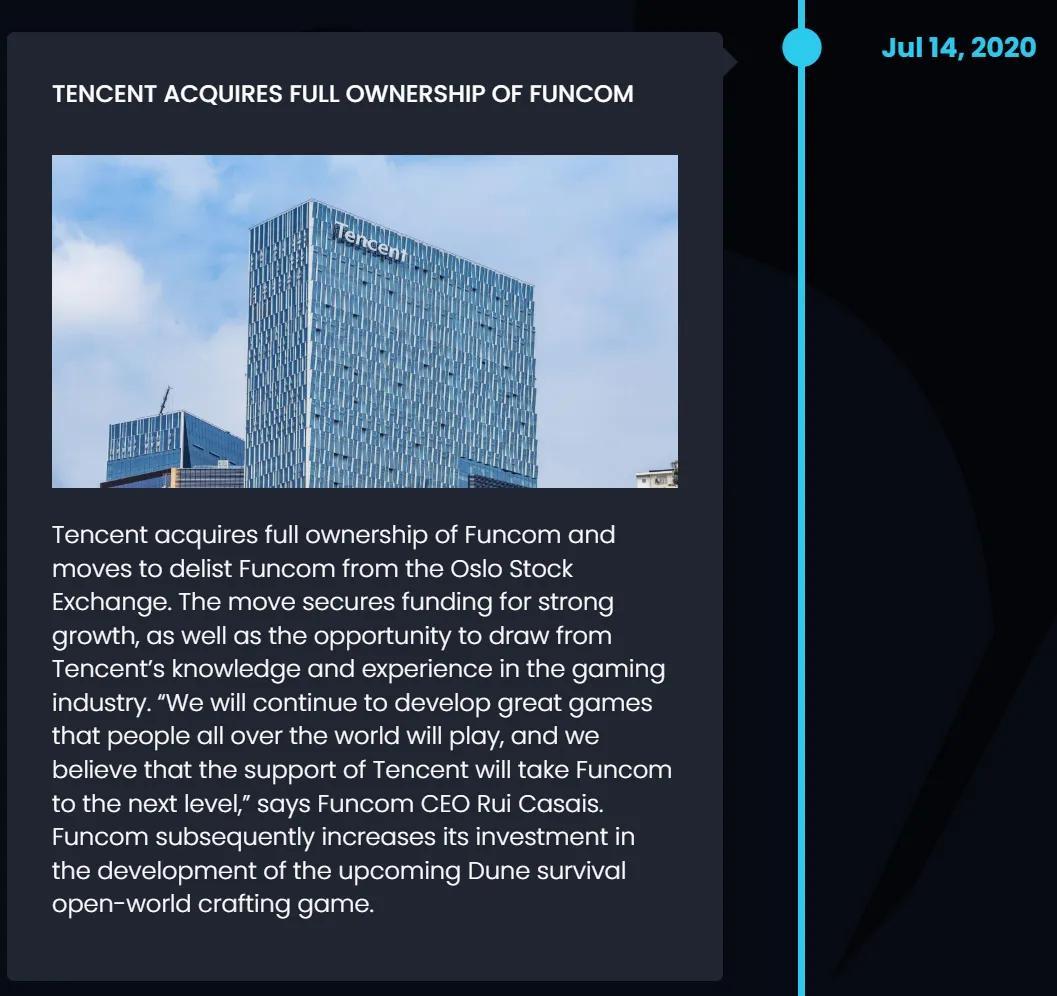 Funcom官網顯示,2020年7月,他們成爲騰訊子公司