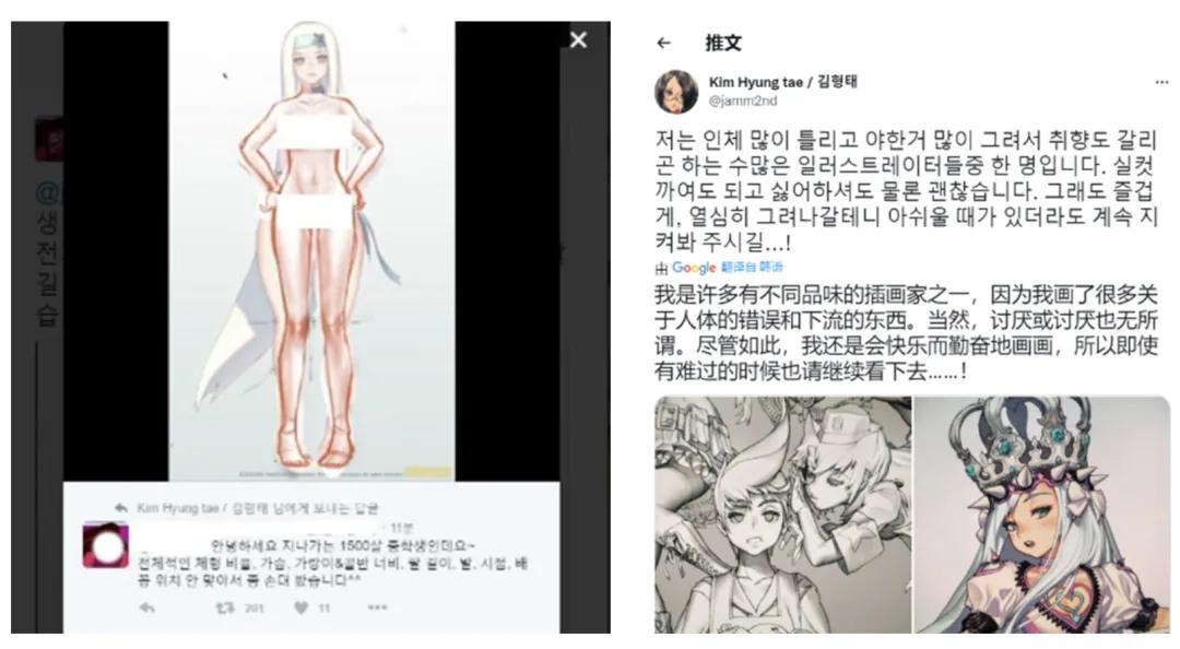 當時,行業內外對他們的風格也有不少質疑,風評可謂兩極分化。有人喜歡得不行,也有人覺得這種人體太誇張、太下流,但金亨泰對此卻相當執着,有人發帖“糾正”他,他還會直接回應自己不會改變。