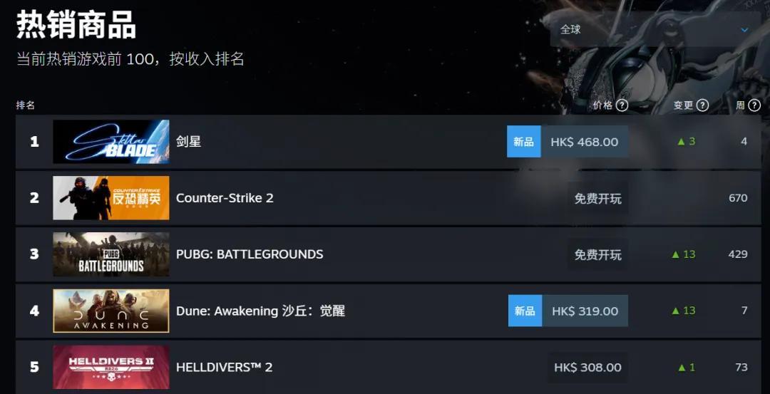 此前在PS5獨佔上線後,《劍星》就曾在60多個國家預購排行榜中名列前茅;5月31日發佈PC試玩版後,遊戲的同時在線人數峯值突破26000 人,登頂“新品熱銷榜”榜首;正式上線後,遊戲衝上了Steam全球熱銷榜第一,同時在線人數峯值超過18萬,首日銷量約爲87萬份,第三方預估其總收入爲3.08億人民幣。