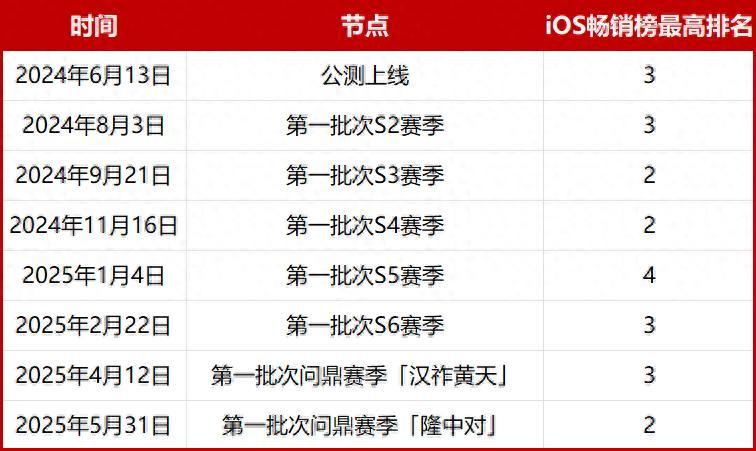 《三國:謀定天下》上線一年以來歷經八個賽季,每逢大節點更新必定衝到iOS暢銷榜最前端,已經成爲國內SLG市場的慣例,也成爲2024年國內遊戲市場最大的黑馬。嗶哩嗶哩財報顯示,2024年遊戲業務收入同比增長40%,2025年Q1遊戲業務同比增長76%,均得益於《三國:謀定天下》出色的市場表現。董事長陳睿在財報會議中表示“四月上線的S7賽季首日用戶達到了今年用戶的新高”,這意味着在2025年第二季度《三國:謀定天下》還在保持高速增長。