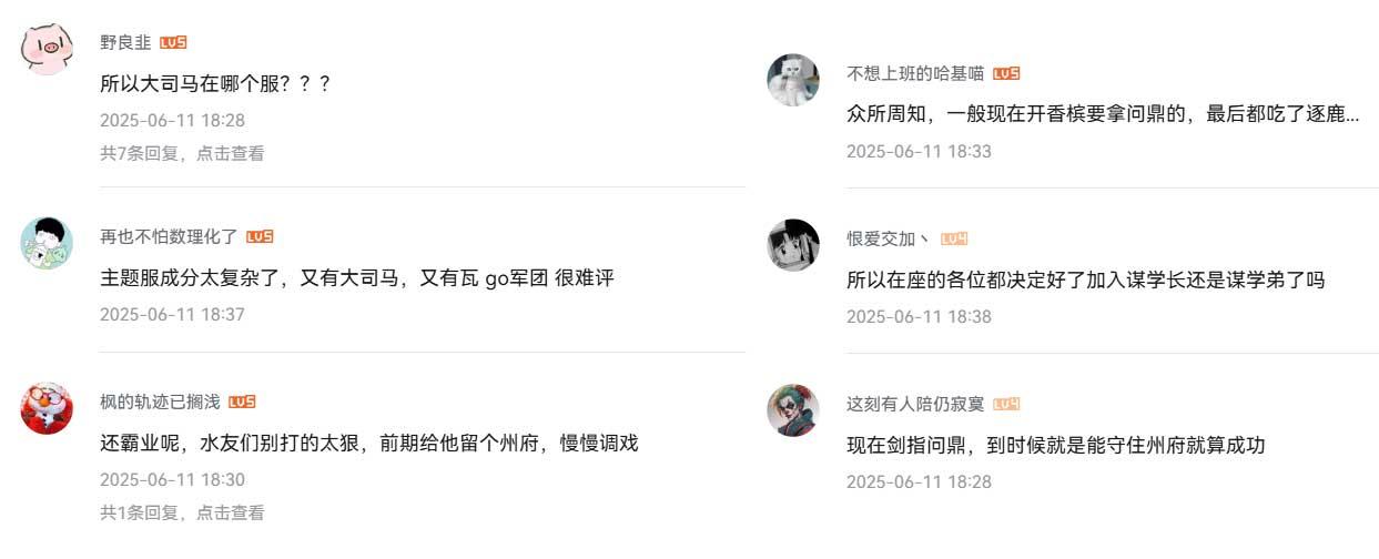 此外《三國:謀定天下》週年慶主題新服也在6月14日開啓,嗶哩嗶哩遊戲發行團隊特邀主播大司馬化身版本關鍵角色“司馬懿”,攜欲夢、程Yooooo等一衆主播分兩個陣營進行對抗,即便是對《三國:謀定天下》跨領域主播聯動早已司空見慣,依然會好奇這一次又會有哪些名場面出現,不少玩家紛紛湧入週年慶主題服中也在情理之中。