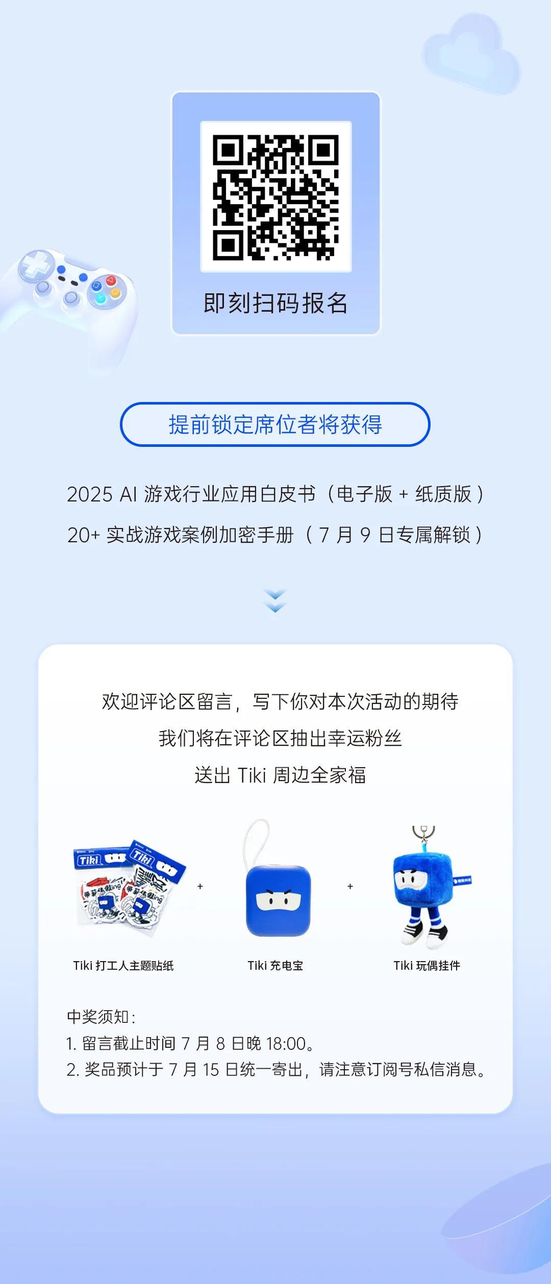 同時,歡迎各位讀者在文章下留言暢談對大會的期待。我們將在截至7月8日18:00前的精選留言中,抽取一位讀者,贈送「Tiki打工人主題貼紙+Tiki充電寶+Tiki玩偶掛件」。