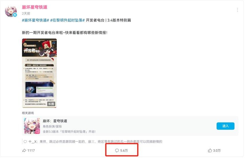 但就是添加了這麼一個其他遊戲常見的功能,卻引發了《崩鐵》玩家大規模不滿,公告下評論爭吵高達5.6萬條之多,許多玩家反對官方添加跳過鍵。