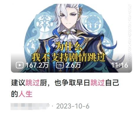 其實早在《崩鐵》剛開服時,米哈遊另一款遊戲《原神》就因爲不能跳過劇情,在玩家間有着不小爭論,還因此誕生了“跳過劇情=跳過人生”的梗。能不能跳過劇情,在許多玩家心中有着格外的重視度。