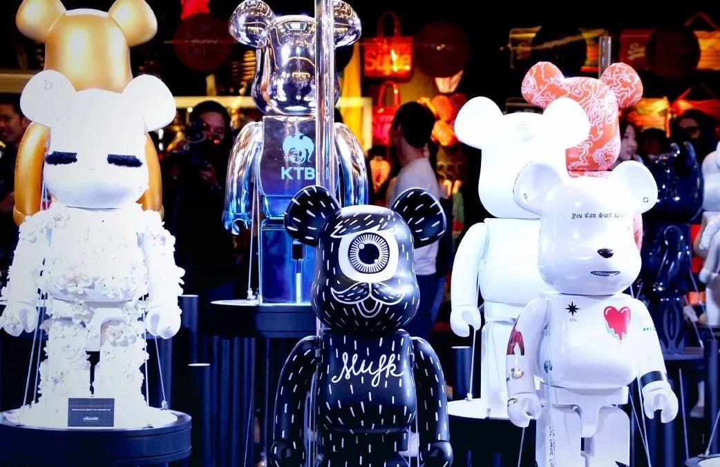 但積木熊和泡泡瑪特不同,它的大小不是固定的,其基礎款,是7釐米高的100%款。此外,常見的還有400%、1000%款,一些特殊場合,你甚至能見到5000%的巨大積木熊。