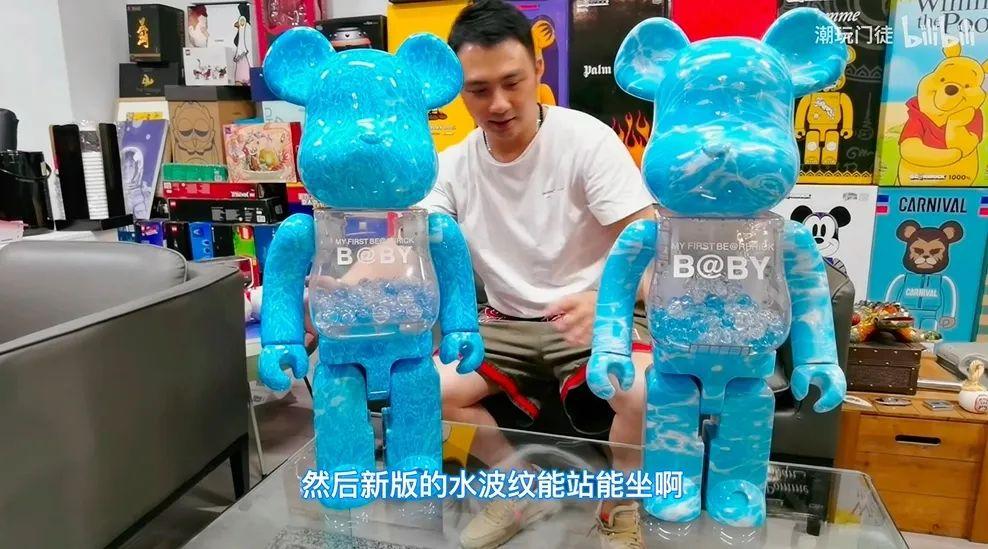 B站有個UP@潮玩門徒,在2021年做過一個水波紋積木熊的真假貨對比。真貨當時售價4萬,假貨據說是花費3、50萬元製作模具後,搞出來的,售價也不便宜,2500元。