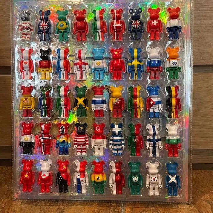 最初的積木熊,同樣是盲盒,它運用了時裝的概念,會推出一個個季度系列,而每個系列裏有18款,每款對應不同主題。比如有一款固定是國旗類,那每個系列裏,就會有一個熊身上總是不同的國旗。