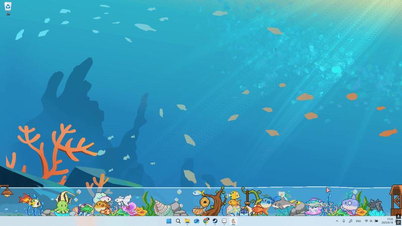 魚兒們會在水中自在遊動、也可以與你互動,收集它們掉落的金幣,積累資源,一步步擴充你的水族館,讓整個桌面變得靈動又治癒~
