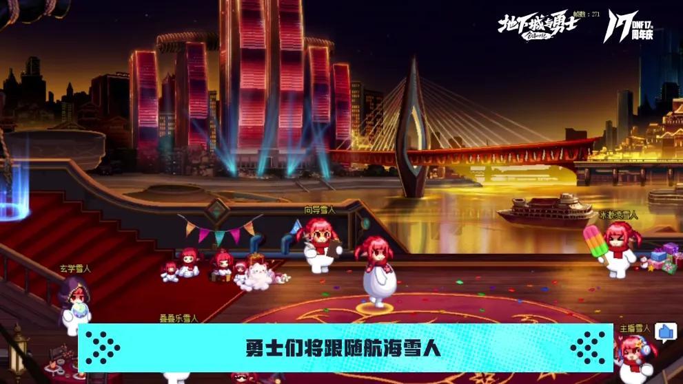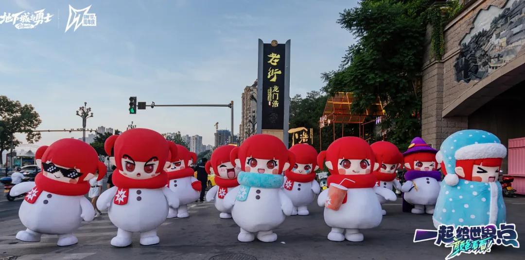期間,DNF還組織了多種表情形象的魔界雪人人偶集合“炸街”,同時亦有部分人氣KOL如“我不是龍蝦”閃現活動區……