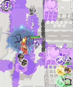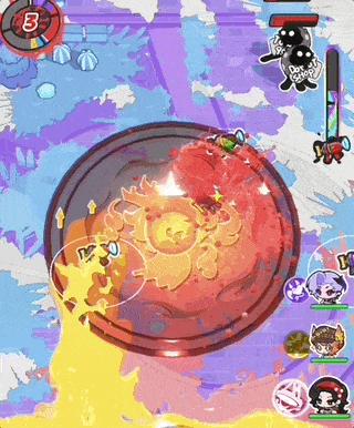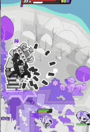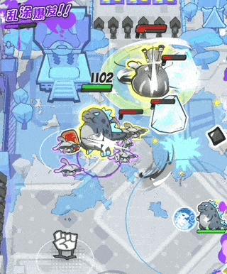 戰鬥畫面的左上角,有個“亂塗” 計量表時刻記錄着不同顏色的比例變化。其中佔比最高的 “主導色彩”,會觸發不同的加成和特殊動畫。