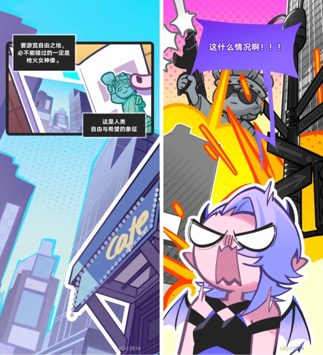 粗放的線條、叛逆的色彩,插畫立繪既有美式卡通的狂野 ,又帶着一點日式POP的明快。宣傳視頻裏角色BiuBiu打出來的子彈,跟潑灑的果汁汽水一樣。