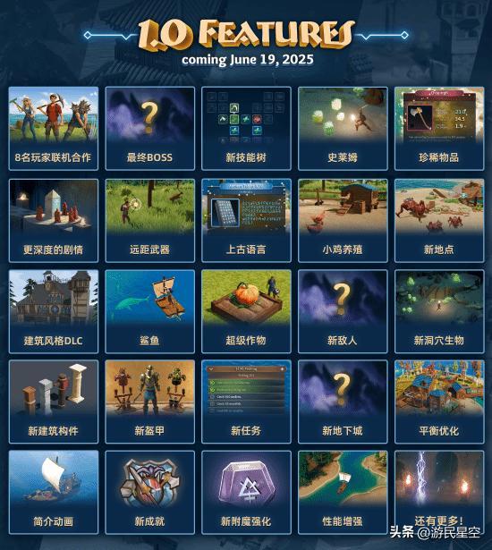 正式版新增特色玩法!邀請至多7名好友,共同征服萊恩島!不僅如此萊恩島還將在未來迎來最終BOSS!在這故事結尾究竟是什麼在等待着玩家?6月19日一起來合作收集資源、擴建防禦工事抵禦怪物侵襲;分工經營農場,優化作物種植與動物飼養效率;亦可主動組隊探索高危地牢,共享珍貴戰利品並挑戰強力Boss。