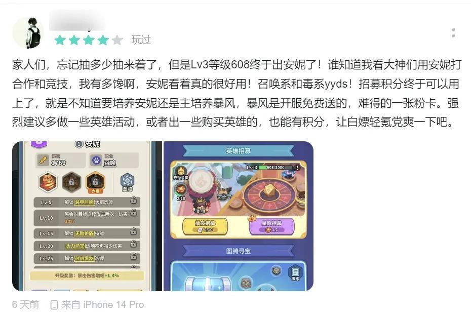 TapTap社區就有不少玩家,爲抽取安妮、雪姬這些角色而持續體驗遊戲——雖然這背後有強度、機制作爲保證,但至少證明了畫風和美術是遊戲的競爭優勢。