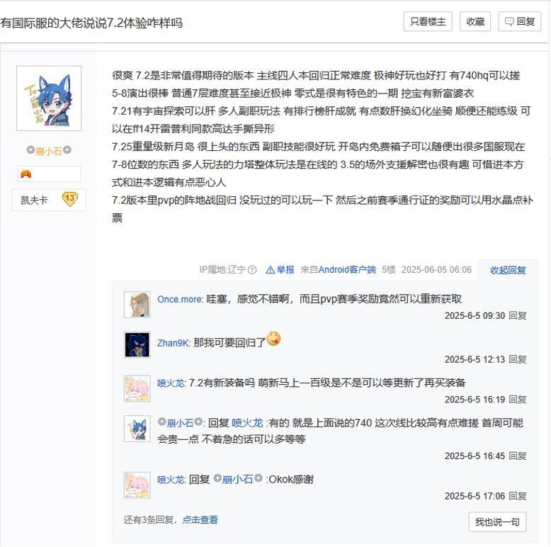 圖2 國際服玩家對於《FF14》7.2版本的好評