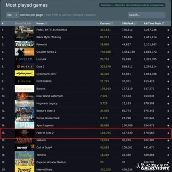 有了1代的質量背書,面對POE2,大量玩家選擇了“無腦衝”。哪怕需要花30美元,購買“支持者包”,纔有登錄遊戲的資格,依然擋不住玩家們的熱情。上線首日同時在線峯值突破45萬,僅僅三天這一數字直逼60萬,足以躋身Steam在線人數歷史榜單前列,而這僅僅是EA階段。