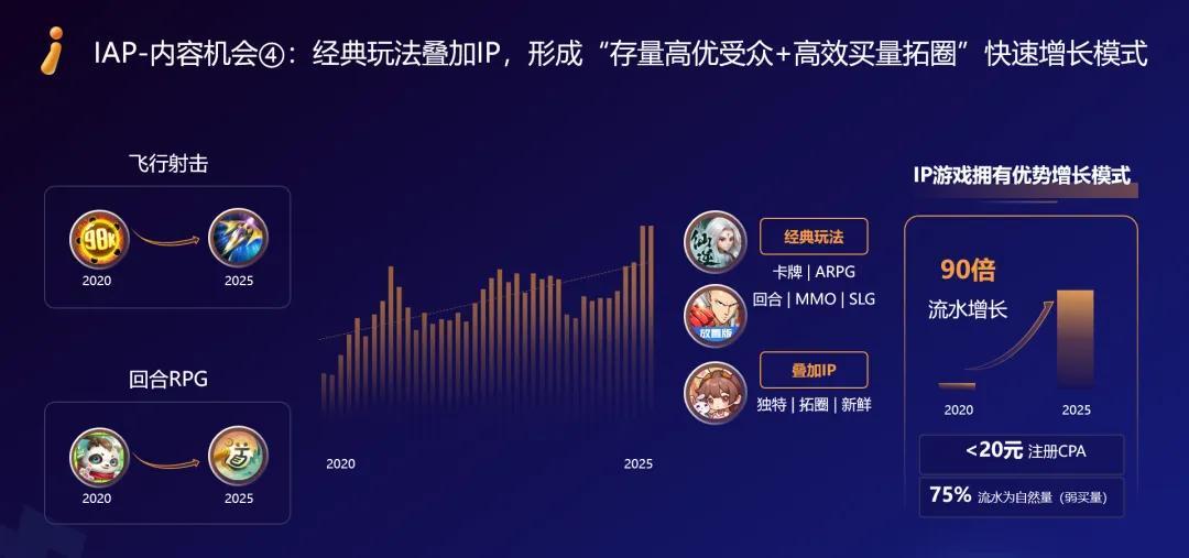 至於IAAP(混合變現),現在這條賽道已經很捲了,大部分新遊都要在首發期快速驗證投放策略和擴大跑量規模,進入平臺期後,一邊要跟進市場熱點、更新素材補量,一邊要持續對高價值核心用戶的召回。