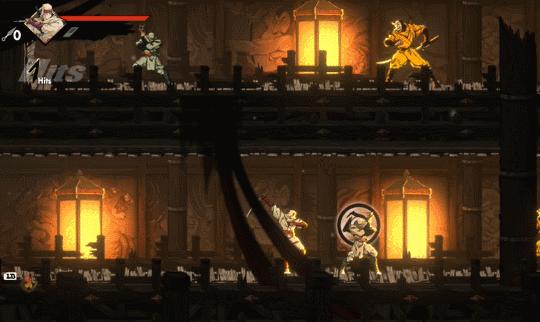 而喬·武藏的攻擊方式,可以用“行雲流水”來形容。在不少關卡中,玩家都可以以手裏劍作爲萬能起手式,與敵人近身交鋒前先上一套硬直,在拉近距離後用忍刀近身砍殺之。這套操作能夠在移動中連貫地完成,絲毫不拖沓。玩家還能夠利用一擊必殺的忍法技能“忍殺”,達成高效且華麗的連殺效果。隨着畫面移動,頗有種“過五關斬六將”的快感。