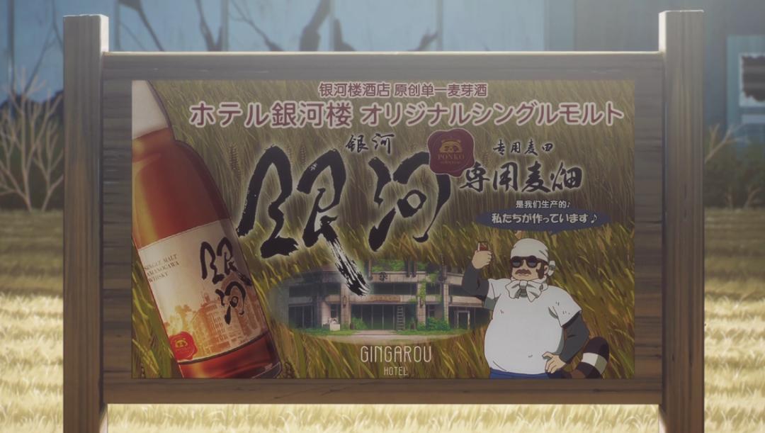 動畫的第五集,講述酒店爲了釀造一瓶極品威士忌,八千代和狸貓一家種植原料,搭建酒廠,努力試錯了近百年,才做出符合心意的威士忌。