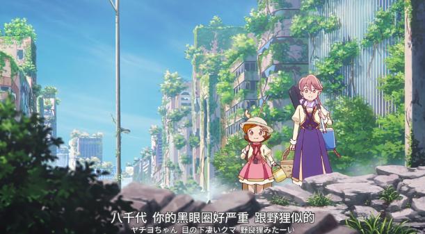 再比如動畫第四集,女主八千代與女二嘭子外出尋找食材。眼瞅着從銀河系工作動畫轉型成了輕鬆系的荒野求生。
