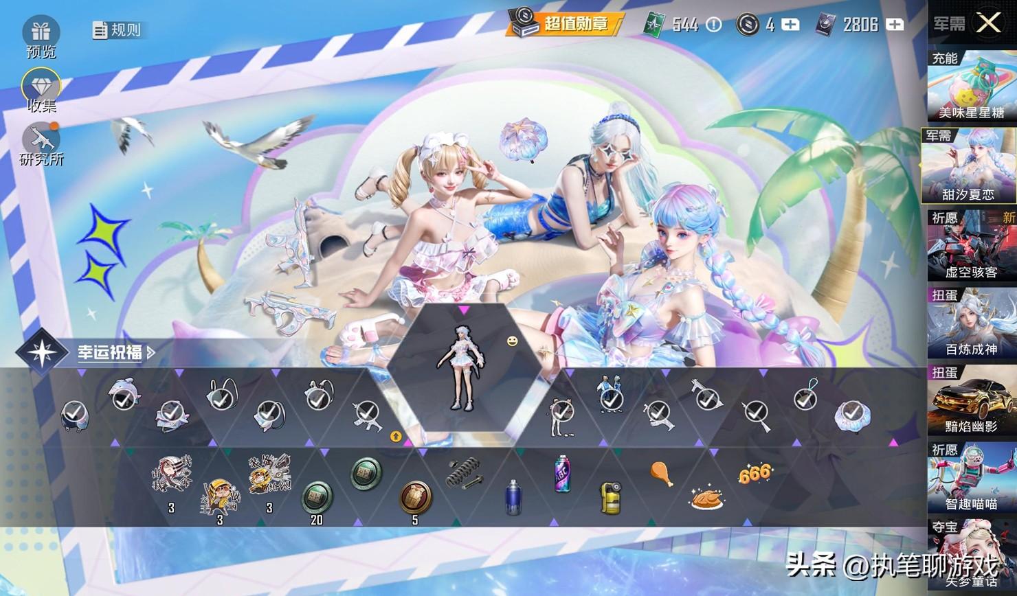 聊完了關於新手冊的話題後,咱們來說一下新軍需“甜汐夏戀”的抽獎概率吧,作爲一年一度的泳裝系列,又是“一角色、二套裝”的搭配,上架之後得到了不少玩家的認可,甚至一度出現“滿大街”的盛況。