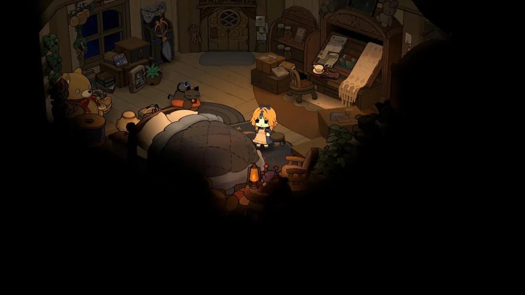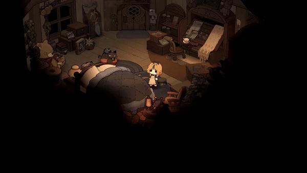 於是整個遊戲的畫風,到處都透露着這種散漫又古靈精怪的氣質:經典的魔女要素、細節滿滿卻又被黑暗遮掩的場景、從工具轉變爲武器的剪刀、性格迥異的魔女和思路跳躍的對白……