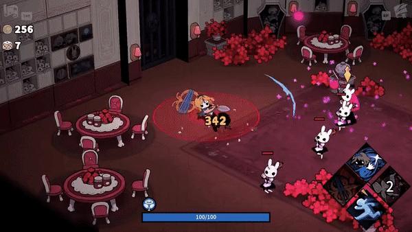 遊戲並沒有用一個很宏大的世界觀來讓玩家產生救世的急迫感,反而是用視角非常窄的故事脈絡,把魔女、茶會,與拯救魔女庭院給綁定在一起。這樣做的難點在於,如何在可愛的視覺效果,與激烈的遊戲戰鬥機制之間,找到平衡點。