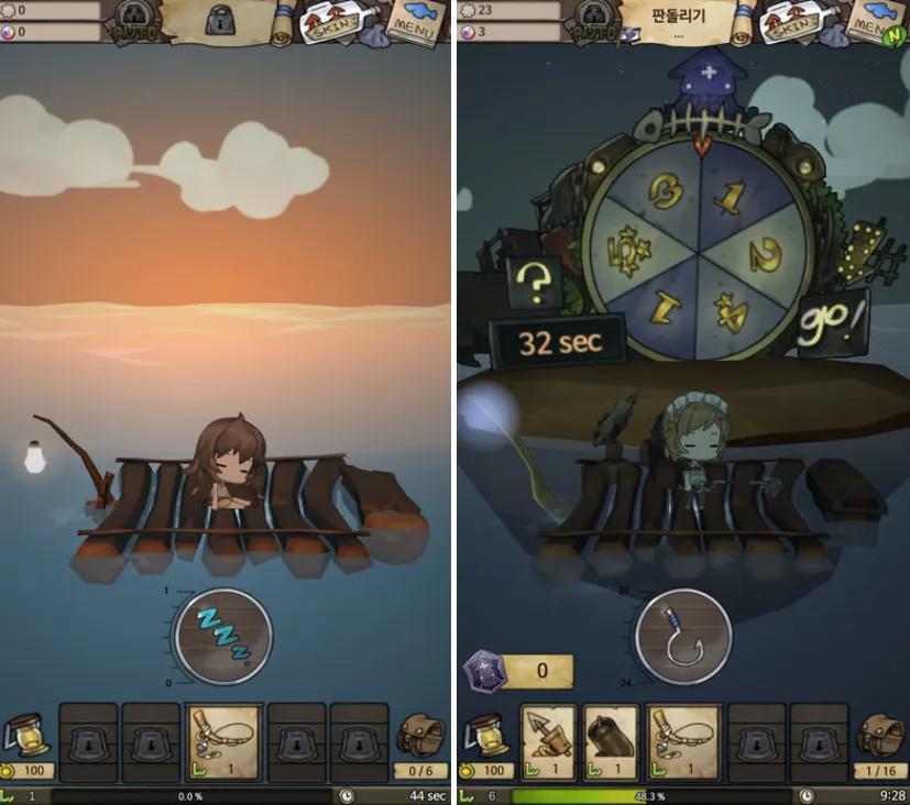 這是一款描繪「少女獨自漂流在海面上求生」的放置遊戲,玩法包括釣魚、漂流瓶、製作、料理等等,在那個年代,海上漂流類開放世界的代表作《Raft》還沒發佈,《漂流少女》幾乎成了這個賽道的獨苗。