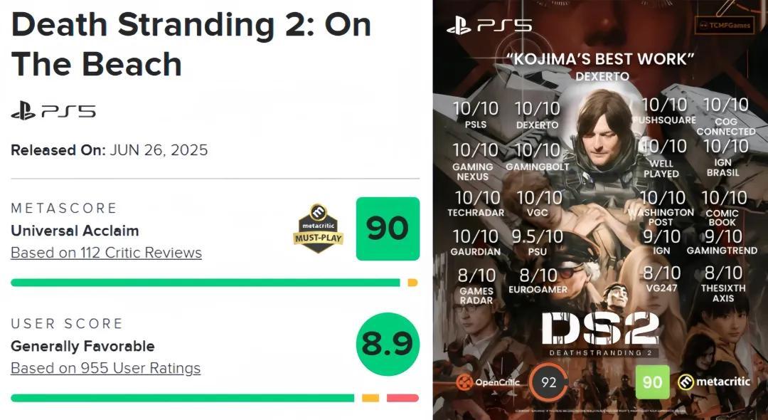 但「事與願違」,相比初代的巨大爭議,《死亡擱淺2》口碑好得一邊倒——112家媒體均分90分,海內外媒體盛讚,KOL高喊藝術,玩家直呼Amazing。小島秀夫在最近死亡擱淺世界巡迴活動的倫敦站上,對此分數也表示很滿意。