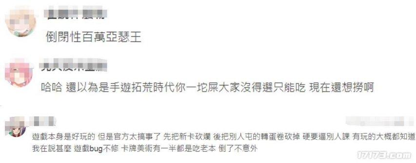對於遊戲的停運,有網友調侃這是倒閉性百萬亞瑟王,還有的吐槽,手遊開荒時代,你是一坨粑粑,大家沒得選只能喫,現在還想撈?還有玩家吐槽遊戲運營拉垮,各種砍福利逼玩家氪金,遊戲完全是在靠美術喫老本。