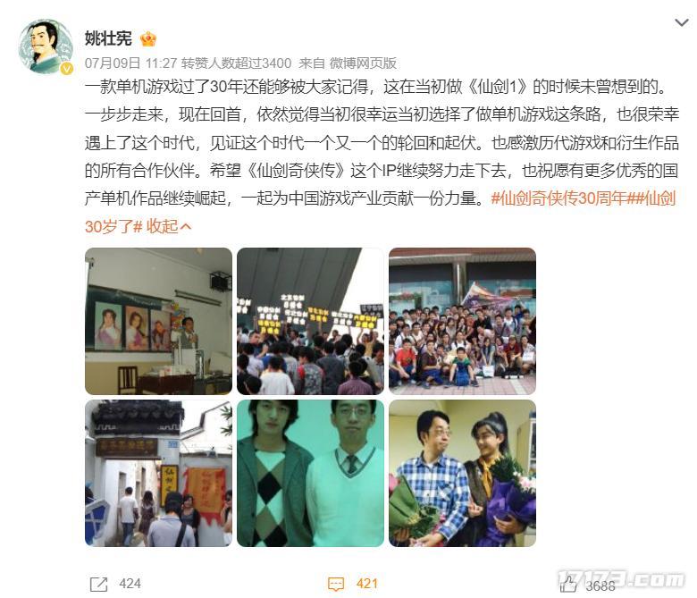 時隔一天後,《仙劍奇俠傳》的製作人“姚仙”姚壯憲也有感而發,“一款單機遊戲過了30年還能夠被大家記得,這在當初做《仙劍1》的時候未曾想到的。”