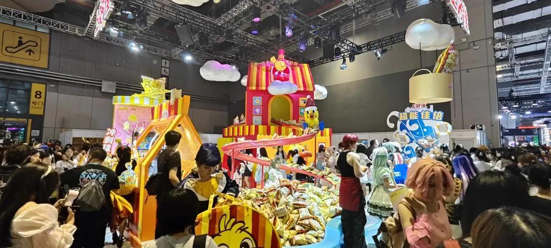 比如《崩壞:星穹鐵道》白厄角色造景、《異人之下》的茶館場景和巨龍造像、《使命召喚》手遊的雙層樓、《遺忘之海》的巨型帆船、《戰雙帕彌什》角色造像、《銀與緋》的城堡……甚至上好佳和伊利也來湊熱鬧,搭出了個零食滑梯和巨型「綠皮霸總」。