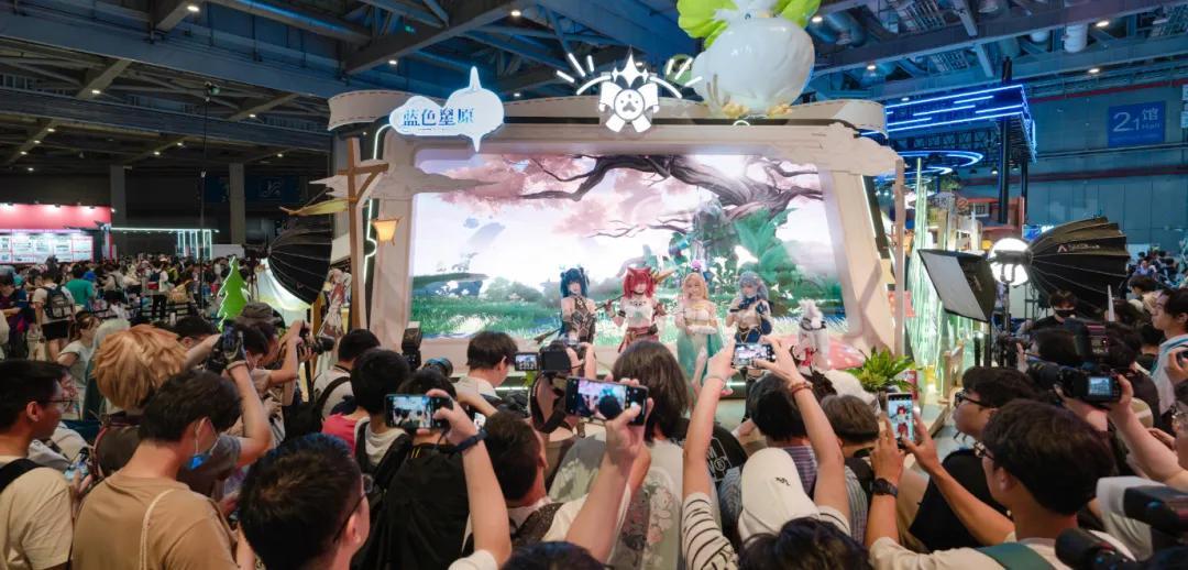 當然附近其他展商也毫不遜色,蠻啾的新遊《藍色星原:旅謠》第一時間就發光了試玩資格,周邊也販售一空;
