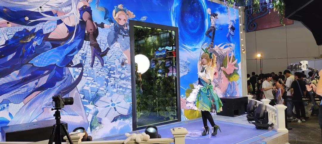 騰訊新晉大世界二遊《歸環》除了Coser舞臺外,還在展區另一側搭了一座巨型美少女造像。