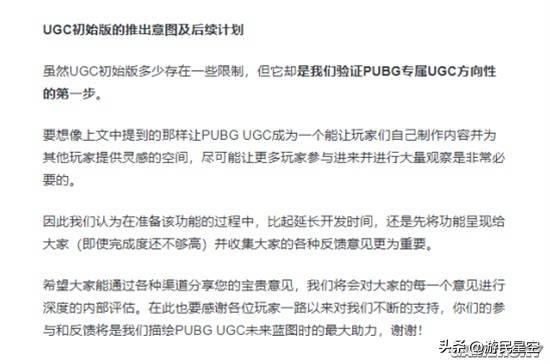 總而言之,UGC的出現,讓《PUBG》的玩法不再止於現有的模式。雖然目前遊戲已有足夠豐富的玩法,但UGC模式無疑讓玩家們有了更多選擇。未來,隨着《PUBG》UGC模式的成熟,說不定在某一天,玩家們的作品也會有“轉正”到娛樂模式甚至是休閒模式的可能。