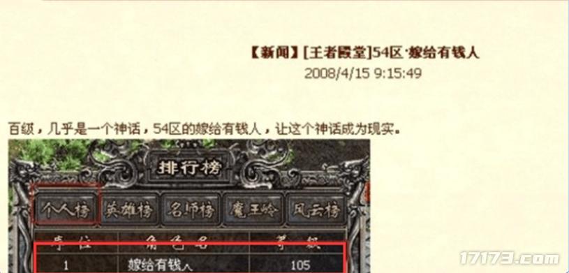 但無論後來者如何耀眼,“嫁給有錢人”作爲傳奇早期升級第一猛人的地位始終無可撼動。