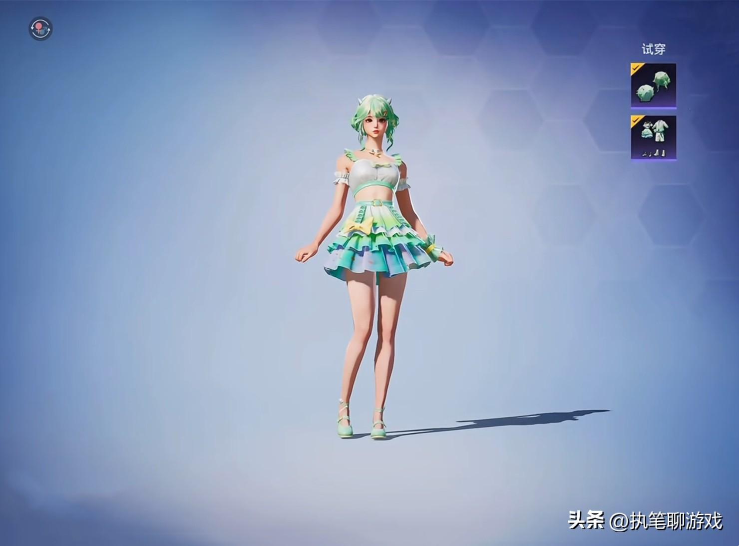 首先我們來看“薄荷星砂”唯一的套裝,從遊戲內的建模表現來看,與光子公佈的精修海報幾乎沒有什麼太大的區別,屬於夏季清涼裝扮,女角色是束腰百褶裙,顏值足以堪比一些珍藏寶箱的“副套”,而且還是可以DIY的兩件套,頭髮、衣服可以拆穿搭配。