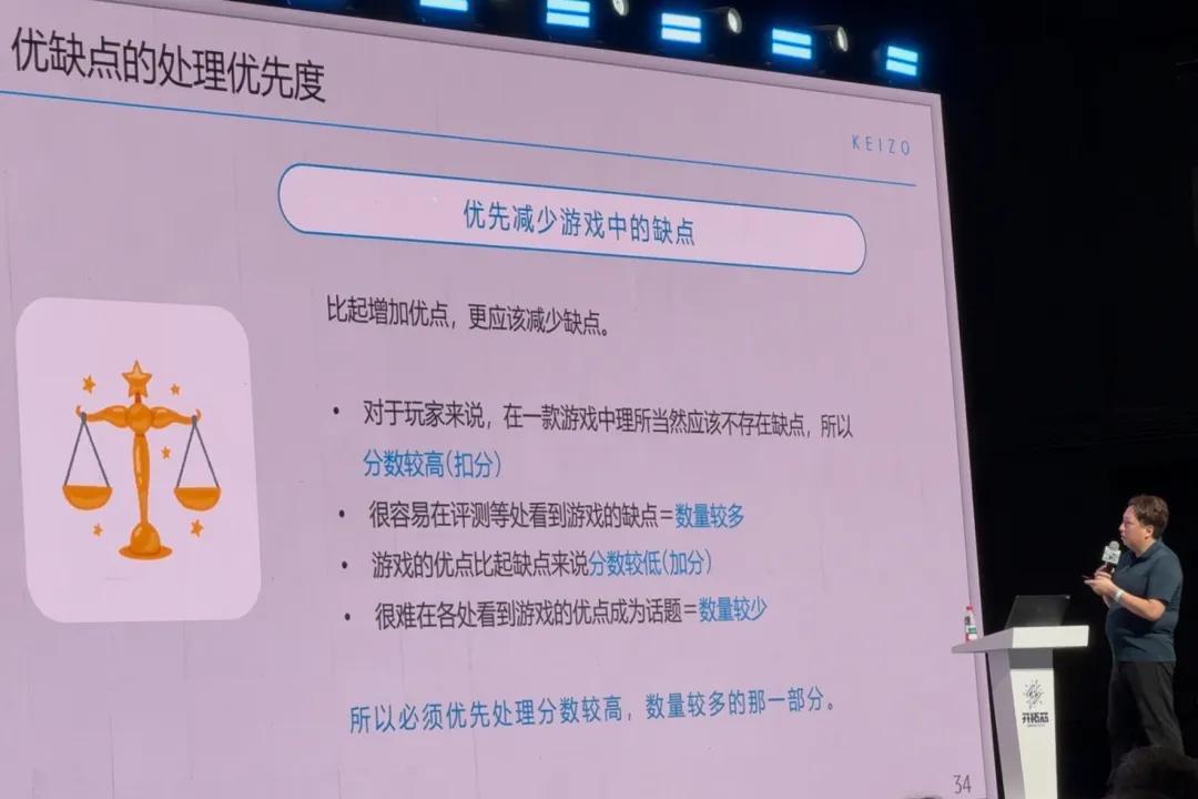 他還提到,對於遊戲來說,減少缺點的重要性大於增加優點:道理也不難理解,「好事不出門,壞事傳千里」,一款遊戲的優點未必會被人傳播,但一旦出現缺點,就會成爲這款遊戲難以覆蓋的負面標籤。