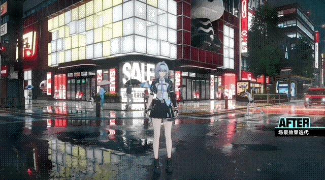 我們希望風景如畫,二次元角色站在場景中不割裂;又不想畫面太扁平,能夠發揮UE5的優勢,提升城市光影和立體感。所以我們只能不停地調試,想辦法找到一個恰到好處的平衡點。