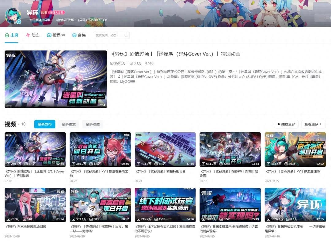遊戲從一開始就爆了。《異環》首曝PV在B站已經累計突破1026萬播放,它幾乎是同代產品中播放量最高的二次元新遊,而且之後官方發佈的每條視頻,播放量也都是百萬級別。