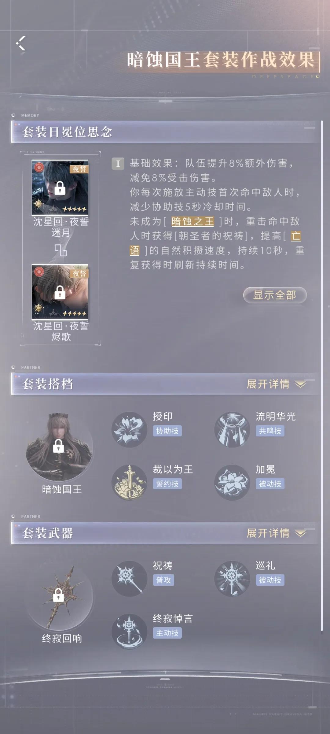 以這次沈星迴「沉墜的冠冕」日卡爲例,你想和這位「暗蝕國王」一同上戰場,需要抽出對應的兩張日卡,成套才能解鎖該身份。